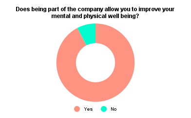 Most of the Team members confirmed that by being a part of the company allows them to improve their mental and physical well-being:
