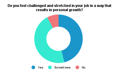 Most of the Team members say they feel challenged at work and confirmed that it results in their personal growth: