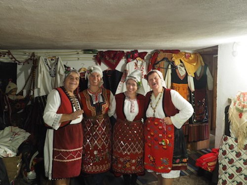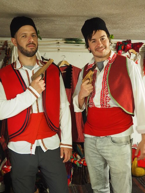 They took us inside. We toasted our arrival with a jug of Rakia (I’m pretty sure Baba Janna can drink us all under the table). We were led to a room with a low ceiling and a weaving loom. The walls were decked with bright red waistcoats. It didn’t take long before we were decked out in traditional garb.